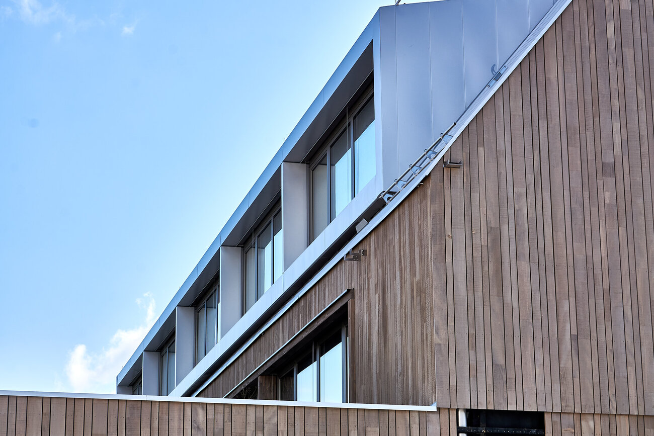 Der Neubau wurde von den Spreen Architekten entworfen und von LignoAlp mit Hilfe unserer Dietrich’s CAD/CAM-Software geplant und realisiert. So konnten selbst individuelle Details exakt modelliert und in die Fertigung überführt werden. Der Einsatz digitaler Werkzeuge war dabei nicht nur ein Effizienzfaktor, sondern ein entscheidender Baustein für die gestalterische und technische Qualität des Gebäudes.